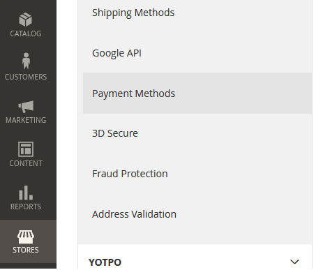 - В меню слева выберите Stores > Configuration (см. рис. ниже).