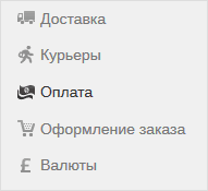 | Доступные методы доставки | Способы доставки, для которых можно использовать данный способ оплаты. |
